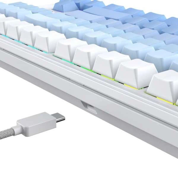 NA87 Pro — это клавиатура с RGB-подсветкой, которая может отображать 16,8 миллионов цветов. Клавиатура поддерживает горячую замену клавиш, что означает, что вы можете заменить любую клавишу без пайки. Кроме того, клавиатура оснащена защитой от ореолов, которая позволяет точно регистрировать каждое нажатие клавиши.