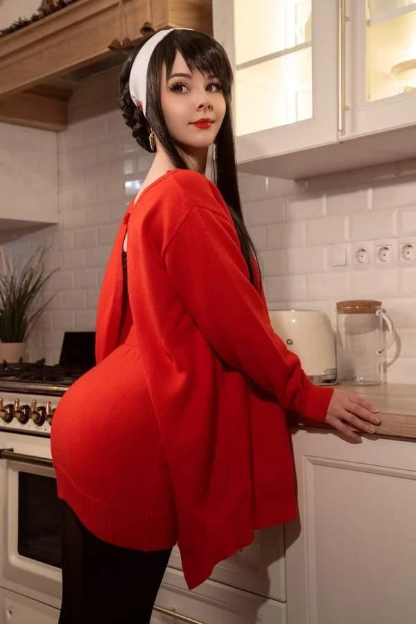 Хелли Валентайн представила, как бы могла подготовиться к празднику Йор Форджер из аниме Spy x Family. Вышел яркий красный образ. Не обошлось и без эротики, свойственной большинству косплея Хелли.