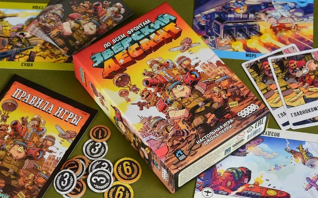 2 фотоА сразиться с другом вы сможете в дуэльной игре «Зверский Десант». Два игрока ведут армии зверей на трёх фронтах — суше, море и в воздухе, комбинируя эффекты карт для победы. Долго разбираться в правилах не придётся, а за атмосферу за столом будут отвечать красивые иллюстрации.