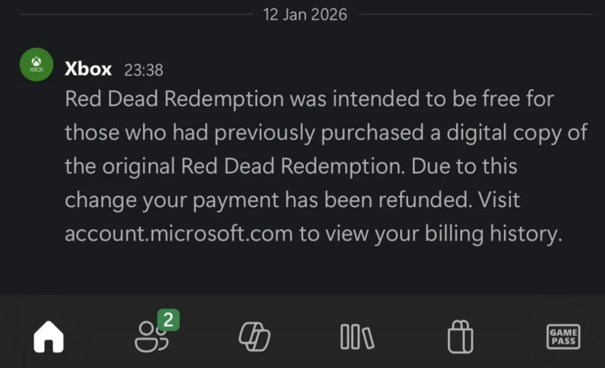 Те, кто решил не мириться с технической ошибкой и купить обновлённую версию Red Dead Redemption для актуального поколения Xbox, начали получать уведомления о возврате средств. Судя по всему, теперь версия для Xbox Series должна беспроблемно загружаться при наличии игры для Xbox 360.