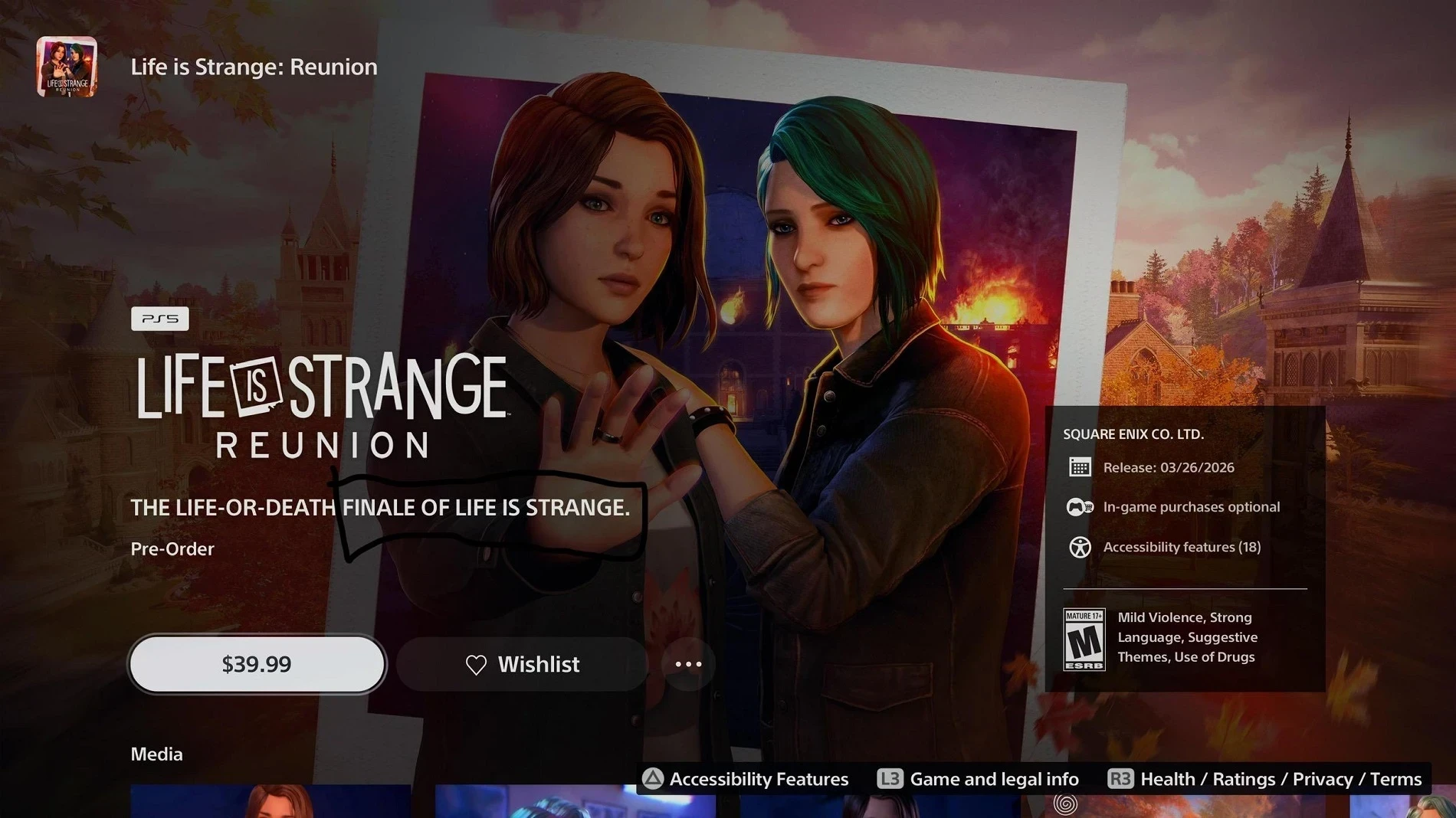 Напугал многих промо-слоган на странице игры в PS Store, обещающий «Финал Life is Strange, который станет вопросом жизни и смерти» (The Life-or-Death Finale of Life is Strange). Фанаты запаниковали, так как увидели во фразе подтверждение, что Reunion станет последней игрой всей серии.