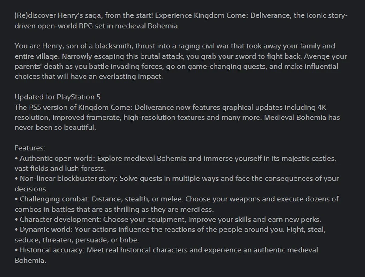 Главная » Статьи » Упоминание Kingdom Come: Deliverance для PS5 обнаружили в PS Store