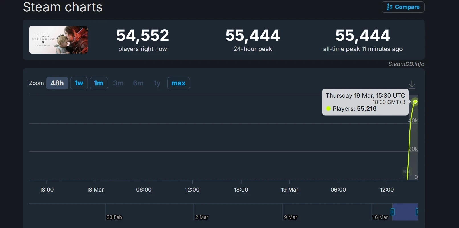 Онлайн Death Stranding 2 в Steam. Источник: SteamDB